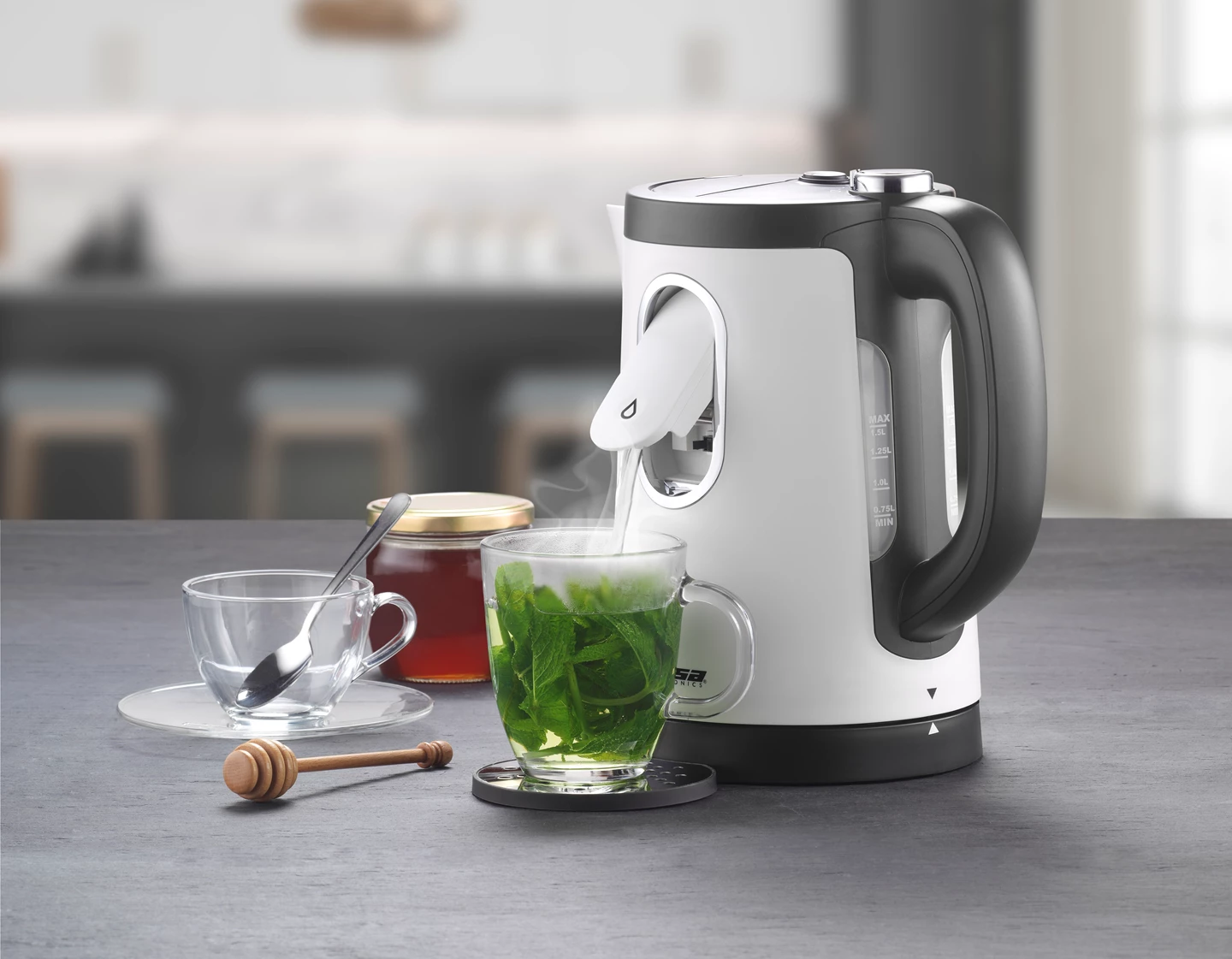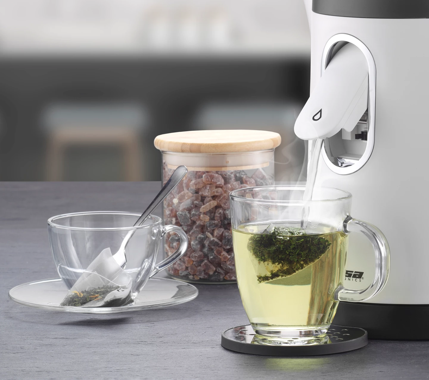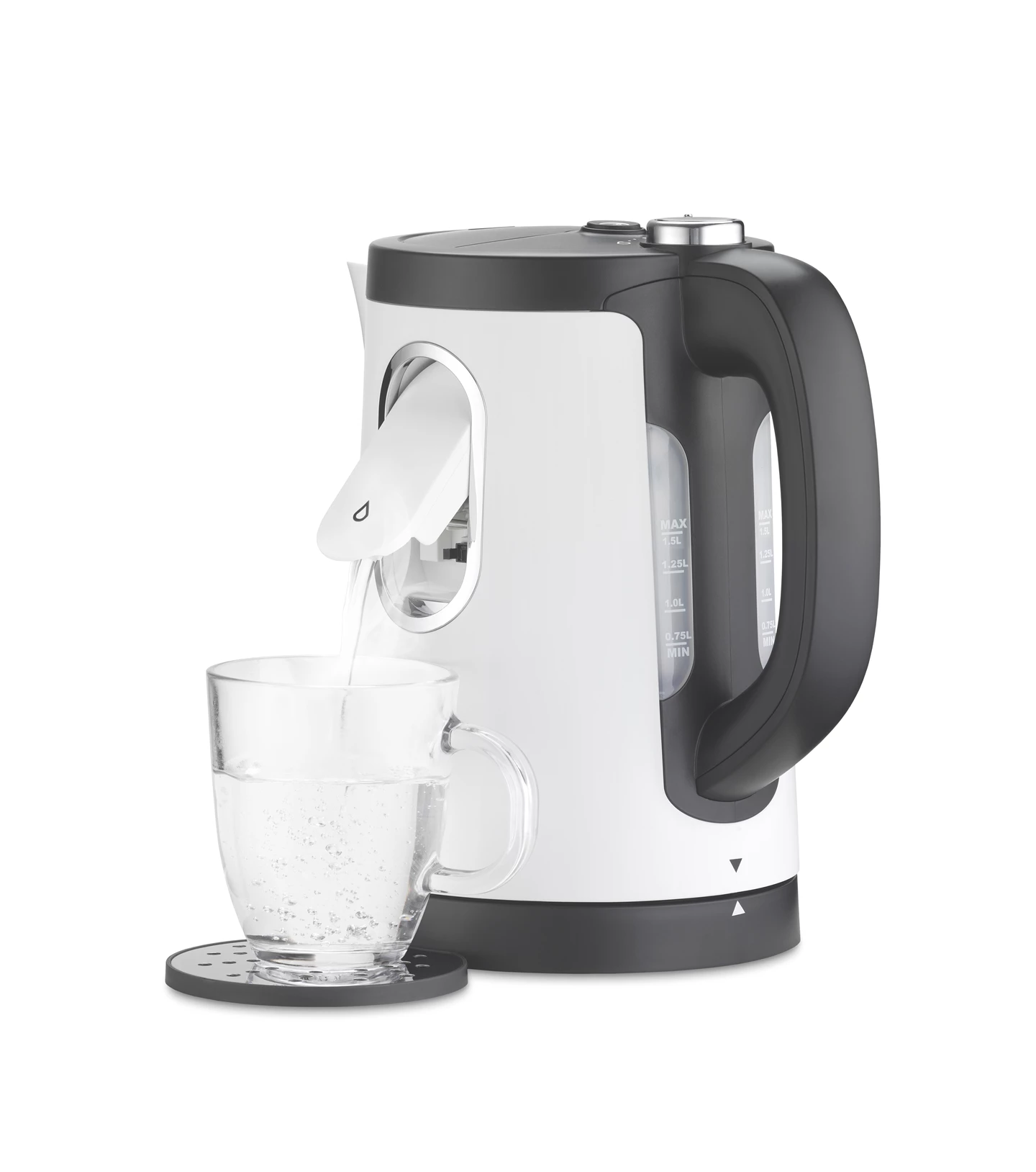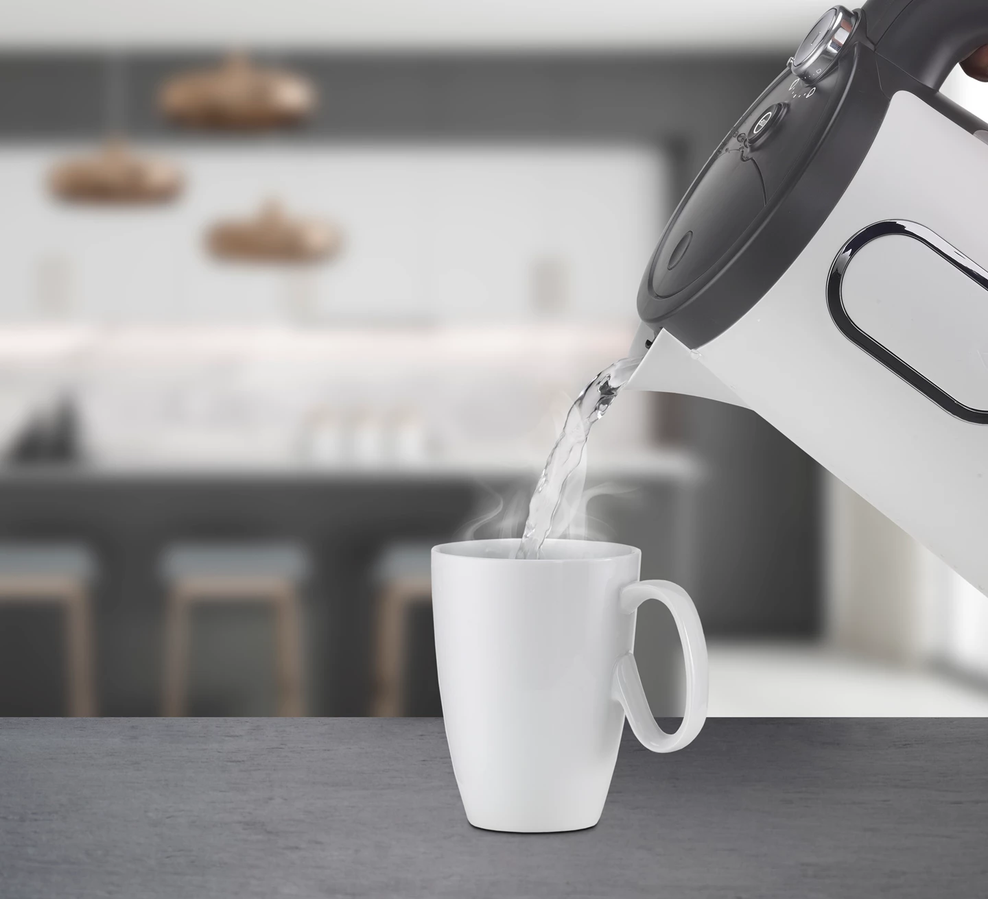 Tee trinken macht jetzt noch mehr Freude. Mit dem innovativen Multifunktionsgerät "2-in-1 Perfect Cup" bereiten Sie heisses Wasser sekundenschnell in der perfekten Menge zu. Sie wählen die passende Tassengrösse von 125 bis 250 ml für Ihr Getränk, stellen die Tasse unter den Dispenser und schon geht’s los. Der Dispenser lässt sich einfach programmieren, dank dem bedienerfreundlichen Regler. So umweltfreundlich und ressourcenschonend war ein Wasserkocher noch nie. Wenn es etwas mehr sein darf, können Sie bis zu 1,5 Liter kochend heisses Wasser zubereiten.