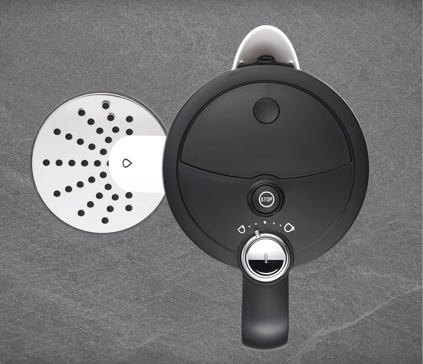 - Wählbare Tassengrösse zwischen 125–250ml oder mit dem Wasserkocher 0,75–1,5L