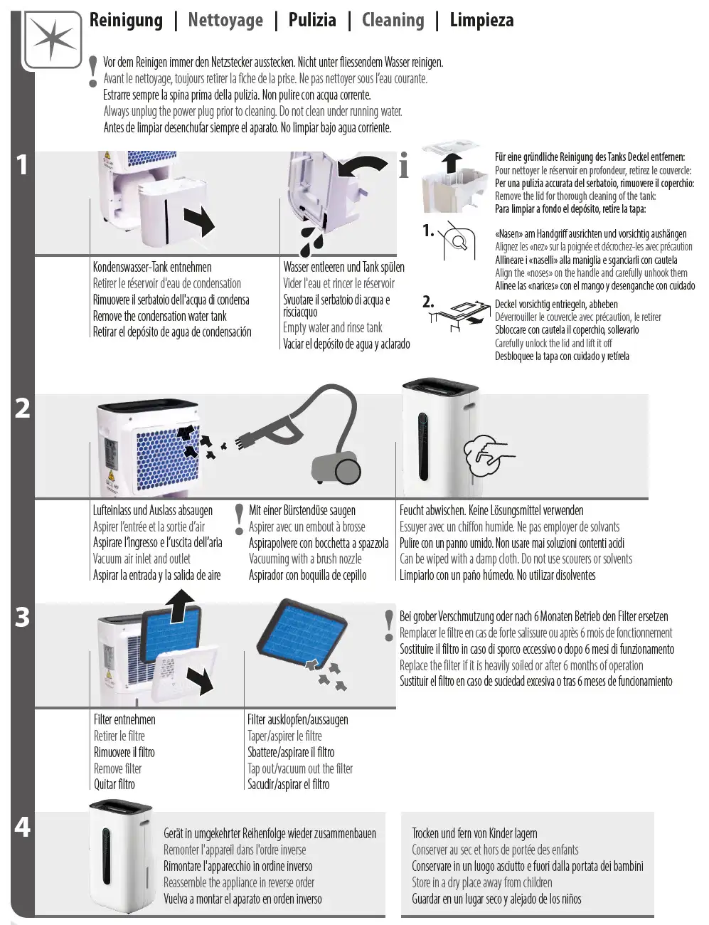 - 3-in-1 filter system with pre-filter, HEPA and activated carbon