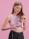 Ionic-T – Mini Size. Max Performance. This compact high-performance hair dryer delivers impressive power and tackles every styling challenge despite its small size. At the heart of the Ionic-T is plasma technology: it generates negative and positive ions that visibly reduce frizz. Hair feels smooth and gains a silky shine. Two speed settings ensure fast, efficient drying. For precise control, four heat modes are available: warm, hot, cool, as well as a convenient alternating mode. This mode automatically switches between warm and cool air, keeping the temperature pleasantly balanced and providing extra protection during styling. Thanks to worldwide voltage and its compact size, the Ionic-T is also the ideal travel companion. The 2 m cable, the waver nozzle and the diffuser enable flexible styling with maximum freedom of movement – for defined looks and extra volume. The Ionic-T folds up and can be stored compactly in the included fabric pouch. With its modern shape, refined details and stylish color, it also makes a clear design statement. Compact, powerful, and travel-ready: performance without compromise.