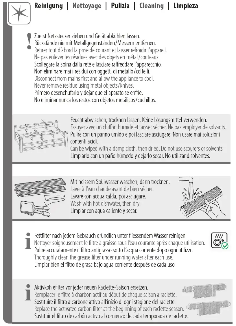 8-person raclette with built-in smoke extractor for full flavour and minimal odour.